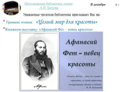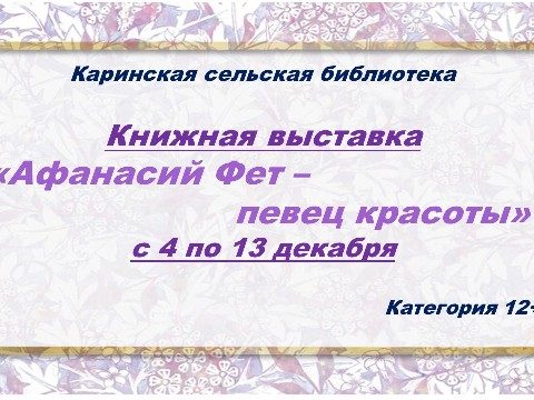 КНИЖНАЯ ВЫСТАВКА «АФАНАСИЙ ФЕТ — ПЕВЕЦ КРАСОТЫ»