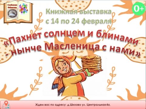 КНИЖНАЯ ВЫСТАВКА «ПАХНЕТ СОЛНЦЕМ И БЛИНАМИ НЫНЧЕ МАСЛЕНИЦА С НАМИ»