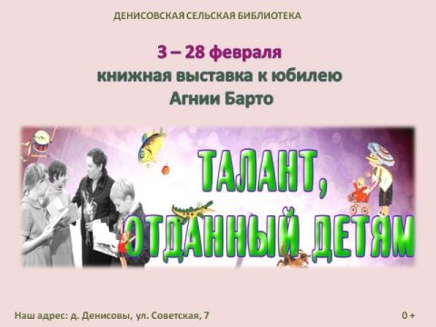 КНИЖНАЯ ВЫСТАВКА К ЮБИЛЕЮ АГНИИ БАРТО «ТАЛАНТ, ОТДАННЫЙ ДЕТЯМ»