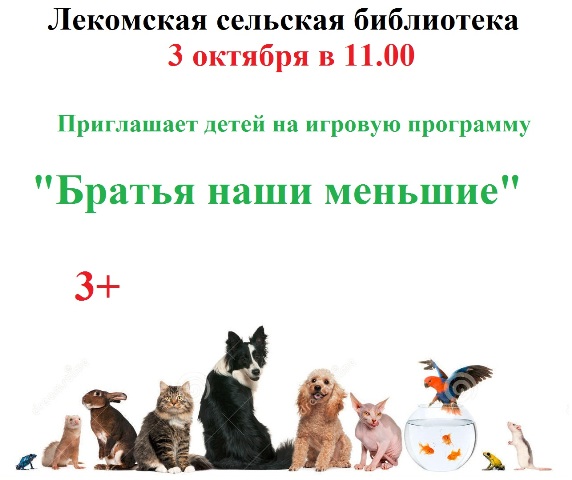 Опубликовано в АНОНСЫ ИГРОВАЯ ПРОГРАММА “БРАТЬЯ НАШИ МЕНЬШИЕ” Опубликовал iazasniall Опубликовано на 01.10.2025 03 октября в 11-00 Лекомская библиотека Приглашает на игровую программу. Автор: iazasniall