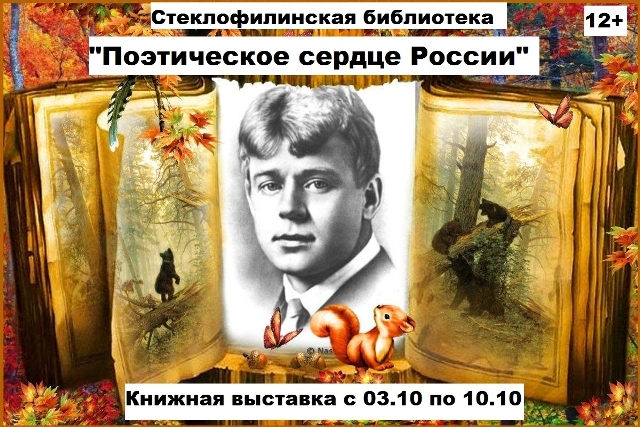 Опубликовано в АНОНСЫ КНИЖНАЯ ВЫСТАВКА «ПОЭТИЧЕСКОЕ СЕРДЦЕ РОССИИ» Опубликовал iazasniall Опубликовано на 02.10.2025 С 01 по 10 октября Стеклофилинская библиотека Приглашает на книжную выставку. Автор: iazasniall