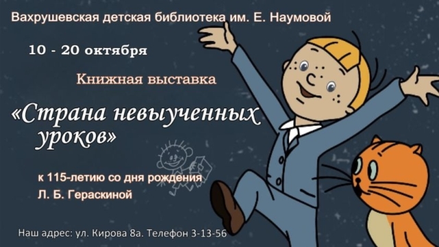Опубликовано в АНОНСЫ КНИЖНАЯ ВЫСТАВКА “СТРАНА НЕВЫУЧЕННЫХ УРОКОВ” Опубликовал iazasniall Опубликовано на 06.10.2025 С 10 по 20 октября Вахрушевская детская библиотека им. Е. Наумовой Приглашает на книжную выставку. Автор: iazasniall