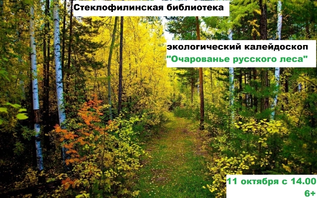 Опубликовано в АНОНСЫ ЭКОЛОГИЧЕСКИЙ КАЛЕЙДОСКОП “ОЧАРОВАНЬЕ РУССКОГО ЛЕСА” Опубликовал iazasniall Опубликовано на 06.10.2025 11 октября с 14-00 Стеклофилинская СБФ Приглашает на экологический калейдоскоп. Автор: iazasniall