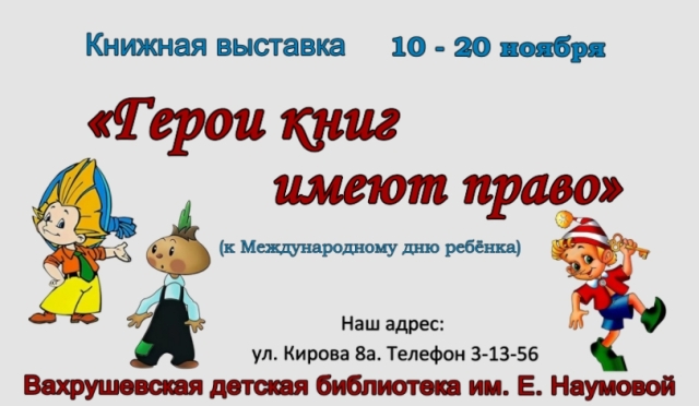 Опубликовано в АНОНСЫ КНИЖНАЯ ВЫСТАВКА «ГЕРОИ КНИГ ИМЕЮТ ПРАВО» Опубликовал iazasniall Опубликовано на 10.11.2025 С 10 по 20 ноября Вахрушевская детская библиотека им. Е. Наумовой Приглашает на книжную выставку. Автор: iazasniall