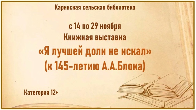 Опубликовано в АНОНСЫ КНИЖНАЯ ВЫСТАВКА «Я ЛУЧШЕЙ ДОЛИ НЕ ИСКАЛ» Опубликовал iazasniall Опубликовано на 10.11.2025 С 14 по 29 ноября Библиотека с.Карино Слободского района Приглашает на книжную выставку. Автор: iazasniall