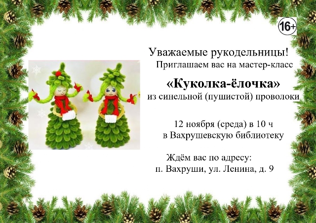 Опубликовано в АНОНСЫ МАСТЕР-КЛАСС «КУКОЛКА-ЕЛОЧКА» Опубликовал iazasniall Опубликовано на 10.11.2025 12 ноября в 10-00 Вахрушевская городская библиотека-филиал Приглашает на мастер-класс. Автор: iazasniall
