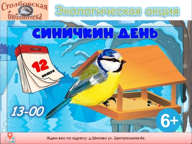 Опубликовано в АНОНСЫ ЭКОЛОГИЧЕСКАЯ АКЦИЯ «СИНИЧКИН ДЕНЬ» Опубликовал iazasniall Опубликовано на 10.11.2025 12 ноября в 13-00 Столбовская СБФ Приглашает принять участие в акции. Автор: iazasniall