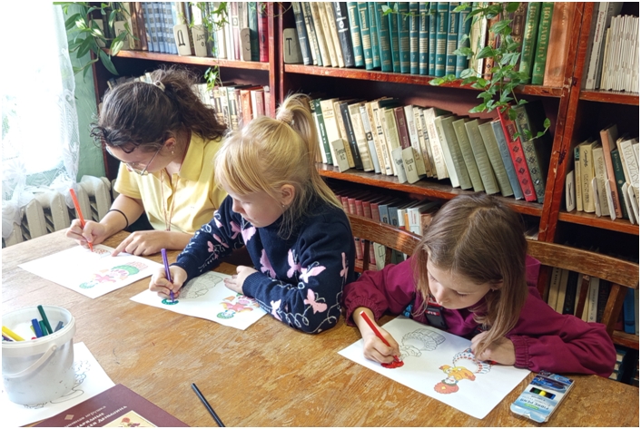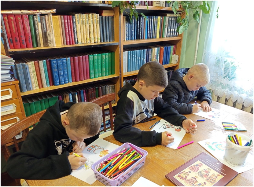 На мастер-классе дети узнали о стиле росписи дымковских игрушек. Орнамент и цветовая палитра строго определены. Основные цвета – красный, оранжевый, голубой, зеленый, желтый. Темных оттенков мало, фиолетового нет. Дети с интересом раскрашивали раскраски с дымковскими игрушками.