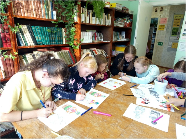 На мастер-классе дети узнали о стиле росписи дымковских игрушек. Орнамент и цветовая палитра строго определены. Основные цвета – красный, оранжевый, голубой, зеленый, желтый. Темных оттенков мало, фиолетового нет. Дети с интересом раскрашивали раскраски с дымковскими игрушками.