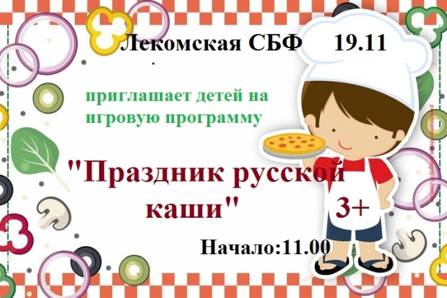 Опубликовано в АНОНСЫ ИГРОВАЯ ПРОГРАММА «ПРАЗДНИК РУССКОЙ КАШИ» Опубликовал iazasniall Опубликовано на 17.11.2025 19 ноября в 11-00 Лекомская библиотека Приглашает на игровую программу. Автор: iazasniall