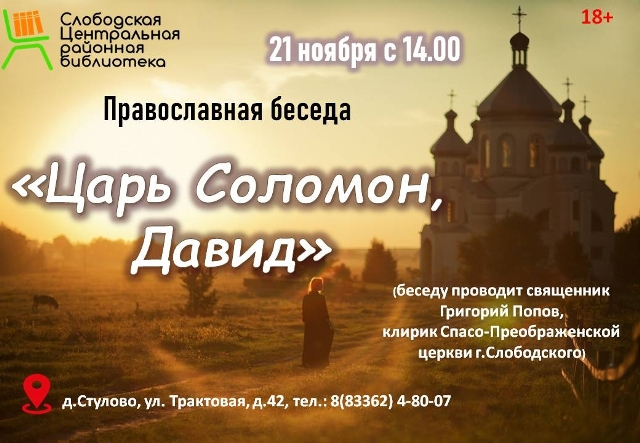 21 ноября в 14:00 состоится беседа на тему «Цари Соломон, Давид».
