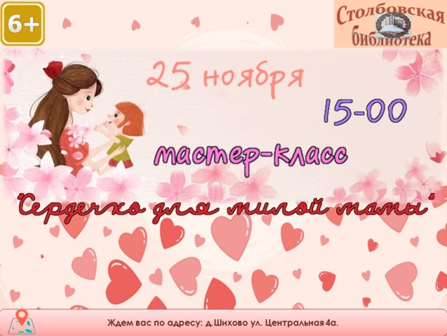 Опубликовано в АНОНСЫ МАСТЕР-КЛАСС «СЕРДЕЧКО ДЛЯ МИЛОЙ ДАМЫ» Опубликовал iazasniall Опубликовано на 21.11.2025 25 ноября в 15-00 Столбовская СБФ Приглашает на мастер-класс. Автор: iazasniall