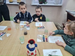 В Совьинской библиотеке прошло занятие кружка «Дорогою добра», посвящённое нашему областному центру городу Кирову «Город на семи холмах». Занятие началось с рассматривания карты России и обозначения на ней Кировской области. Затем дети посмотрели презентацию об областном центре, которая показала, что Киров (Вятка, Хлынов) красивый, древний, светлый. Далее библиотекарь рассказала о Трифоновом монастыре и о его основателе Трифоне Вятском, о селе Дымково и дымковской игрушке. Закончилось занятие росписью дымковской игрушки.