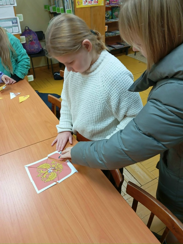 В Столбовской библиотеке школьники приняли участие в патриотической игре, посвященной Дню государственного герба России. Мероприятие началось с краткого рассказа библиотекаря о происхождении двуглавого орла, значении цветов и символов герба. Во время сборки пазлов взрослые задавали детям вопросы, проверяя их знания. Игра прошла успешно: ребята проявили живой интерес и активность.