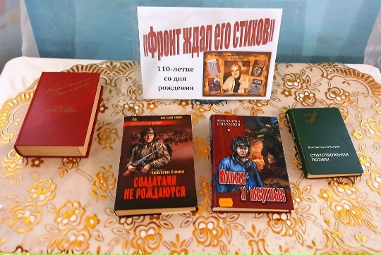 На поэтическом часе «Фронт ждал его стихов», который прошел в Ильинской СБФ, ветераны вспоминали творчество К. Симонова, которому в этом году исполнилось бы 110 лет. Поэт, чьи строки «Жди меня, и я вернусь» стали народной молитвой и объединили поколения, пережил несколько войн. Он прошел путь от старшего комиссара батальона до полковника, был фронтовым корреспондентом и стал очевидцем многих ключевых событий.