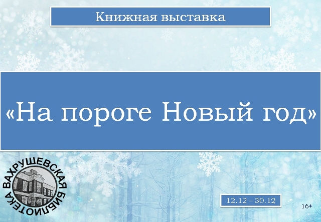 Опубликовано в АНОНСЫ Книжная выставка «На пороге новый год» Опубликовал iazasniall Опубликовано на 08.12.2025 С 12 по 30 декабря Вахрушевская городская библиотека-филиал Приглашает на книжную выставку. Автор: iazasniall