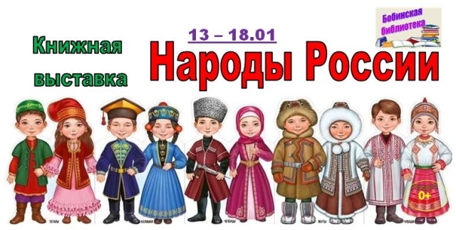 Опубликовано в АНОНСЫ КНИЖНАЯ ВЫСТАВКА «НАРОДНЫ РОССИИ» Опубликовал iazasniall Опубликовано на 12.01.2026 С 13 по 18 января Библиотека Бобино Приглашает на книжную выставку. Автор: iazasniall
