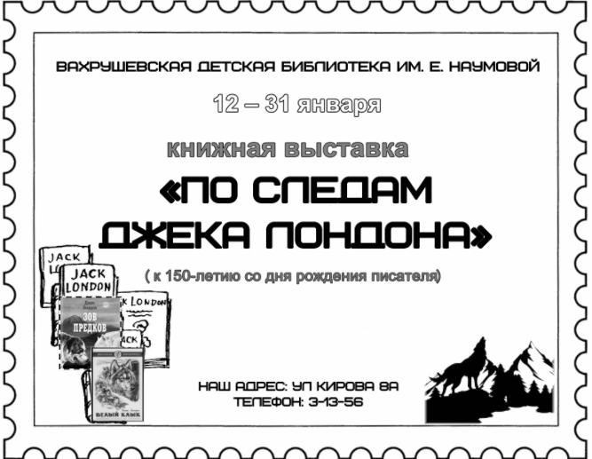 Опубликовано в АНОНСЫ КНИЖНАЯ ВЫСТАВКА «ПО СЛЕДАМ ДЖЕКА ЛОНДОНА» Опубликовал iazasniall Опубликовано на 12.01.2026 С 12 по 31 января Вахрушевская-Детская-Библиотека Приглашает на книжную выставку. Автор: iazasniall