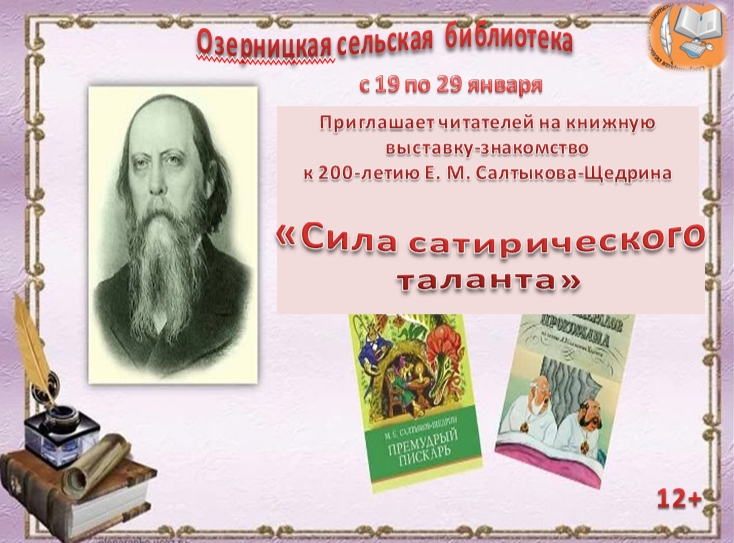 Опубликовано в АНОНСЫ КНИЖНАЯ ВЫСТАВКА «СИЛА САТИРИЧЕСКОГО ТАЛАНТА» Опубликовал iazasniall Опубликовано на 19.01.2026 С 19 по 29 января Озерницкая-Библиотека Приглашает на книжную выставку. Автор: iazasniall