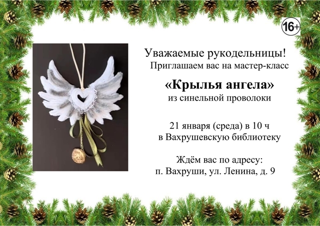 Опубликовано в АНОНСЫ МАСТЕР-КЛАСС «КРЫЛЬЯ АНГЕЛА» Опубликовал iazasniall Опубликовано на 19.01.2026 21 января в 10-00 Вахрушевская ГБФ Приглашает на мастер-класс. Автор: iazasniall