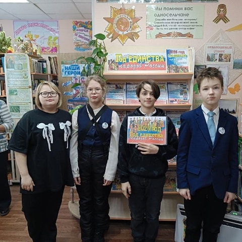 2026 год в России посвящён теме единства народов. В состав нашей страны входят 24 республики, 9 краёв, одна автономная область, четыре автономных округа и 48 областей. Мы, жители Кировской области, являемся неотъемлемой частью Российской Федерации. С ребятами мы открыли Год единства народов, проведя викторину «Наша Родина едина». Ученики отвечали на вопросы о России, разгадывали кроссворд и рассматривали информационный стенд, который был оформлен в библиотеке.