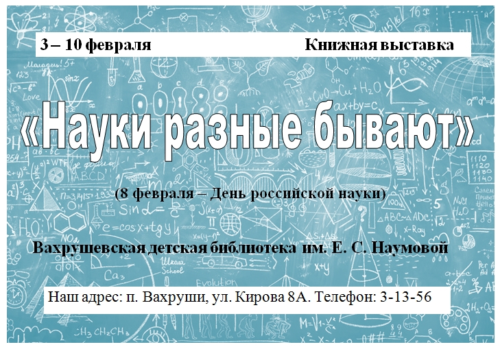 Опубликовано в АНОНСЫ КНИЖНАЯ ВЫСТАВКА «НАУКИ РАЗНЫЕ БЫВАЮТ» Опубликовал iazasniall Опубликовано на 02.02.2026 С 3 по 10 февраля Вахрушевская ДБФ Приглашает на книжную выставку. Автор: iazasniall
