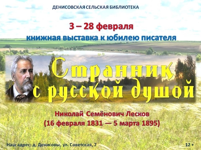 Опубликовано в АНОНСЫ КНИЖНАЯ ВЫСТАВКА «СТРАННИК С РУССКОЙ ДУШОЙ» Опубликовал iazasniall Опубликовано на 03.02.2026 С 03 по 28 февраля Денисовская СБФ Приглашает на книжную выставку. Автор: iazasniall