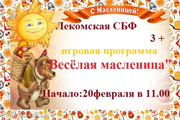 Опубликовано в АНОНСЫ ИГРОВАЯ ПРОГРАММА «ВЕСЕЛАЯ МАСЛЕНИЦА» Опубликовал iazasniall Опубликовано на 18.02.2026 20 февраля в 11-00 Лекомская СБФ Приглашает на игровую программу. Автор: iazasniall