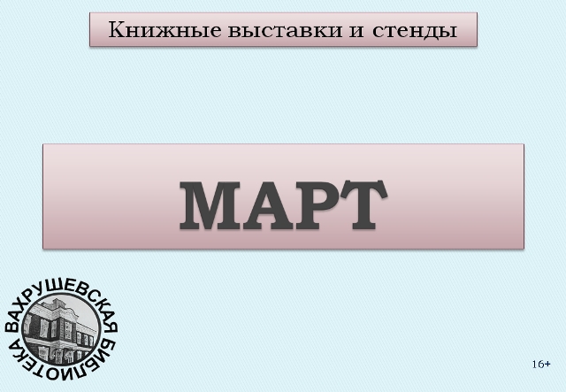 Опубликовано в АНОНСЫ Книжные выставки и стенды в Вахрушевской ГБФ Опубликовано на 11.03.2026 В марте Вахрушевская ГБФ Приглашает на книжные выставки.