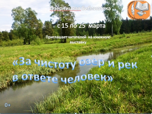 Опубликовано в АНОНСЫ КНИЖНАЯ ВЫСТАВКА «ЗА ЧИСТОТУ ОЗЕР И РЕК ОТВЕЧАЕТ ЧЕЛОВЕК» Опубликовано на 13.03.2026 С 15 по 25 марта Озерницкая СБФ Приглашает на книжную выставку