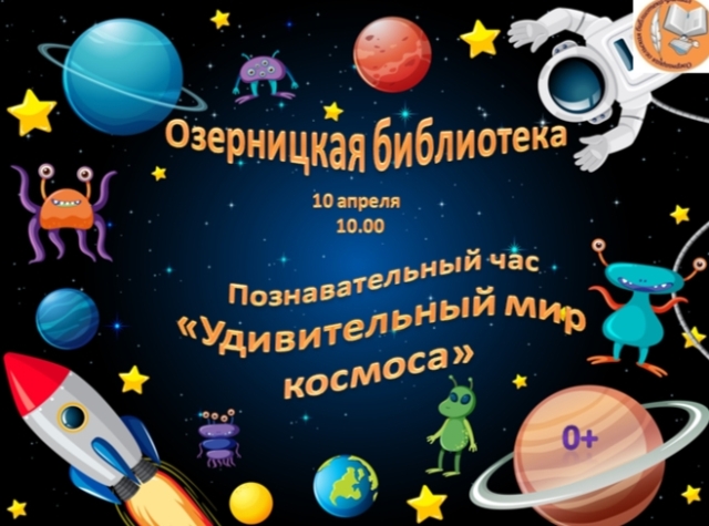 Опубликовано в АНОНСЫ ПОЗНАВАТЕЛЬНЫЙ ЧАС «УДИВИТЕЛЬНЫЙ МИР КОСМОСА» Опубликовано на 08.04.2026 10 апреля в 10-00 Озерницкая СБФ Приглашает на познавательный час.