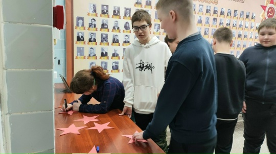 Особый отклик вызвал творческий интенсив «Память, которую мы сохраним». Вместе мы создали «звезду патриотических слов» — так школьники выразили своё отношение к подвигу, запечатлённому в камне.