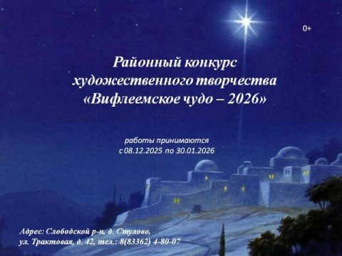 Центральная районная библиотека МКУ «Слободская ЦБС» приглашает всех желающих принять участие в районном конкурсе художественного творчества «Вифлеемское чудо — 2026».Конкурс…
