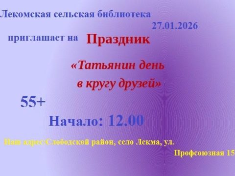 27 января в 12-00 Лекомская библиотека Приглашает на праздник.