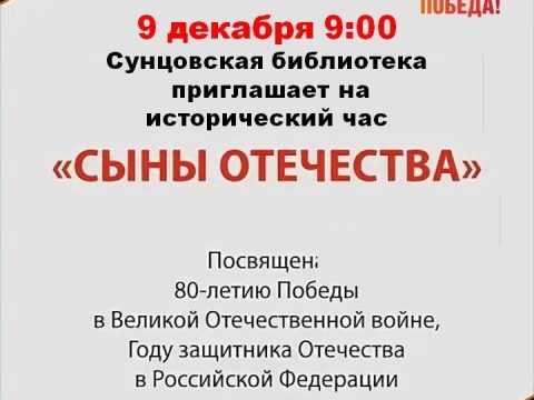 09 декабря в 09-00 Сунцовская СБФ Приглашает на исторический час.