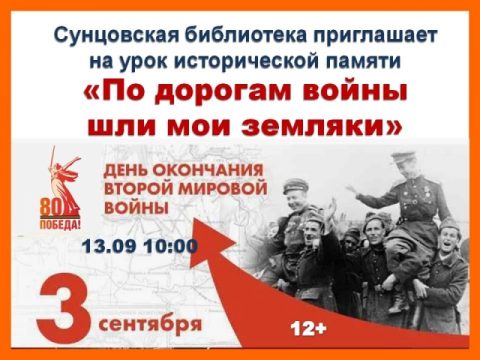 13 сентября в 10-00 Сунцовская СБФ Приглашает на урок исторической памяти.