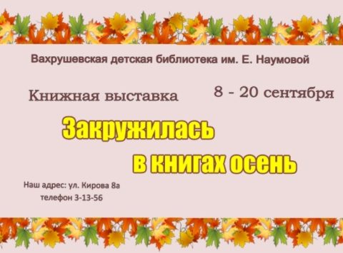 С 03 по 30 сентября Вахрушевская городская библиотека-филиал Приглашает на книжную выставку.