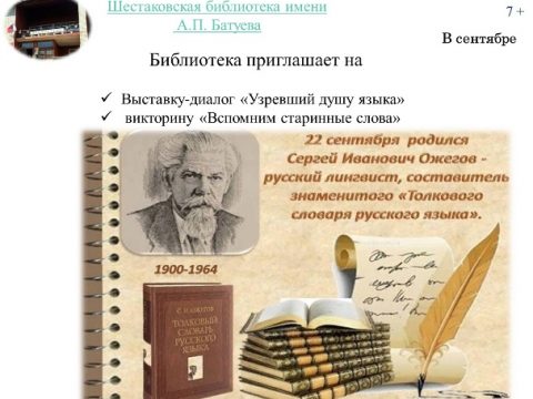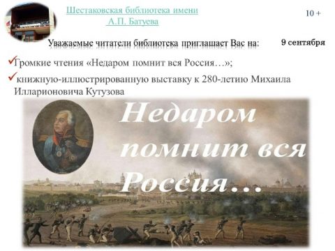 09 сентября Шестаковская библиотека имени А.П. Батуева Приглашает на громкие чтения.