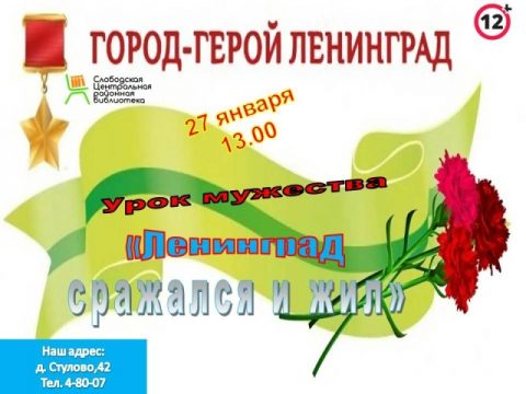 27 января в 14-00 Центральная районная библиотека Приглашает на урок мужества.
