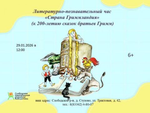29 января в 12-00 Слободская Центральная районная библиотека Приглашает на литературно-познавательный час.