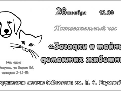 26 ноября в 13-00 Вахрушевская детская библиотека им. Е. Наумовой Приглашает на познавательный час.