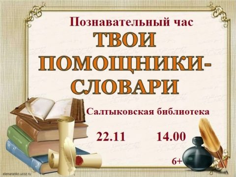22 ноября в 14-00 Салтыковская библиотека Приглашает на познавательный час.