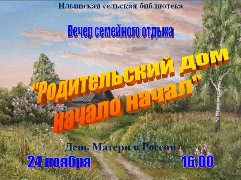24 ноября в 16-00 Ильинская сельская библиотека Приглашает на вечер семейного отдыха.