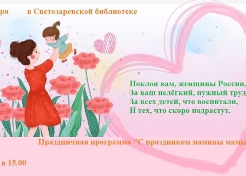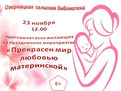 23 ноября в 12-00 Озерницкая-Библиотека Приглашает на праздничное мероприятие.