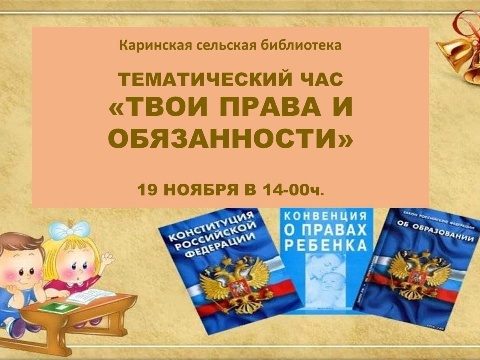 19 ноября в 11-00 Библиотека с.Карино Приглашает на тематический час.