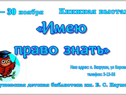 С 18 по 30 ноября Вахрушевская детская библиотека им. Е. Наумовой Приглашает на книжную выставку.