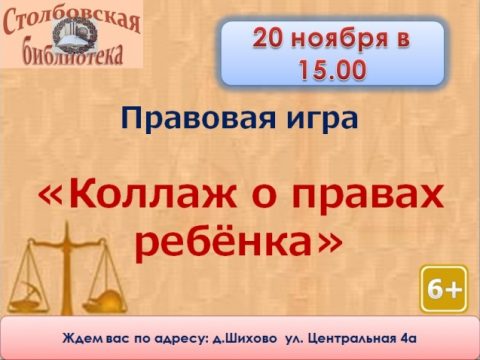 20 ноября в 15-00 Столбовская СБФ Приглашает на правовую игру.