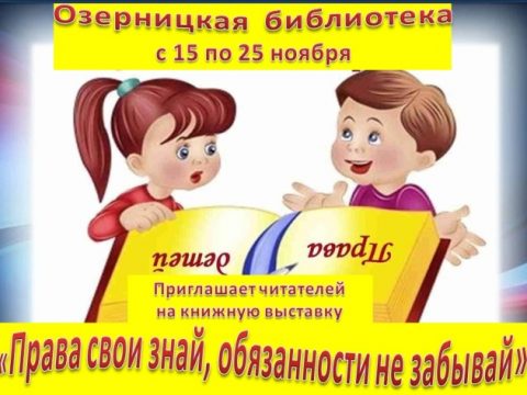 С 15 по 25 ноября Озерницкая-Библиотека Приглашает на книжную вставку.