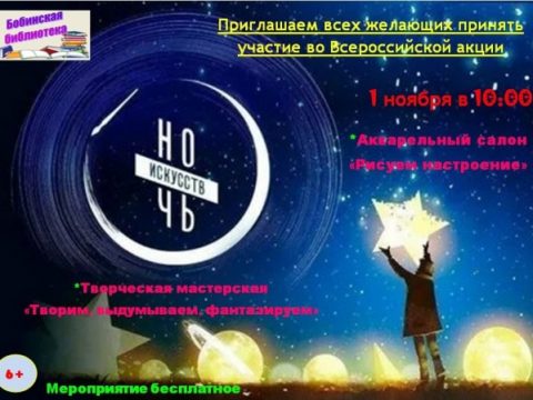 01 ноября в 10-00 Библиотека Бобино Приглашает принять участие во Всероссийской акции Ночь искусств.