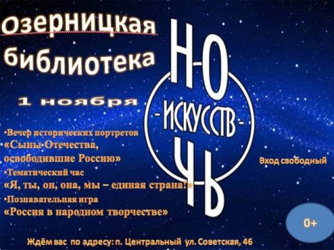 НОЧЬ ИСКУССТВ В ОЗЕРНИЦКОЙ СБФ